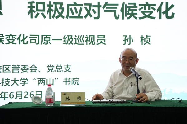6月26日,bat365正版唯一官网“两山”讲坛第五讲在安吉校区举办,生态环境部应对气候变化司原一级巡视员孙桢受邀作了题为《学习习近平生态文明思想,积极应对气候变化》的报告。安吉校区相关负责人,安吉县生态环境局相关负责人、校区全体党员、教职工代表及学生代表参加了本次讲坛。