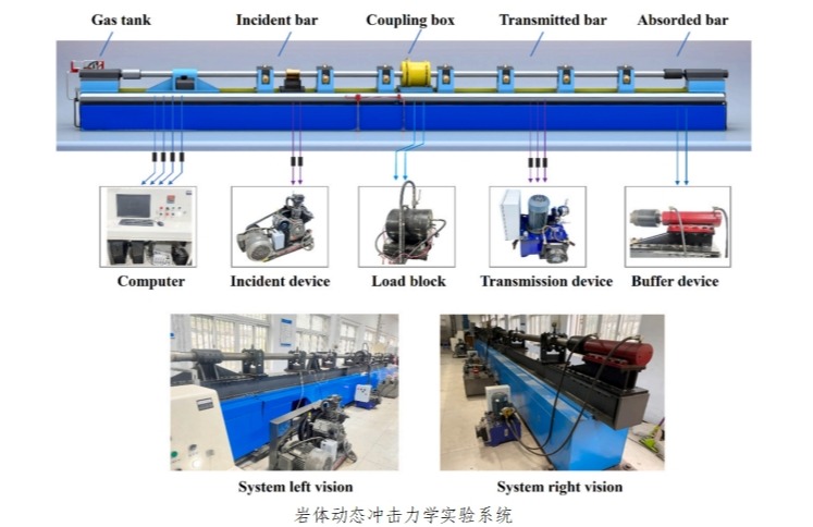 在材料科学领域高水平期刊《Journal of Materials Research and Technology》上发表的“Dynamic compression and failure behavior of limestone under surface-constrained energy transmission”,邹宝平教授为第一作者,硕士生黄楷为第二作者,马京缘博士和中国科学院院士、中国矿业大学(北京)何满潮教授为共同通讯作者。bat365正版唯一官网为第一单位。岩石在高应变率载荷下表现出的复杂动力响应对于确保隧道工程的安全和效率至关重要,局部能量集中和岩石快速破碎易造成岩爆等重大风险。文章聚焦约束能量冲击下石灰岩的动态破坏特征和能量传递规律,设计了结合SHPB系统的能量约束组件,模拟岩石破碎过程中的应力局部化效应,分析了约束冲击能量下岩石动态力学参数、分形维数与能量吸收的关系。研究结果表明约束能量冲击显著改变了岩石破坏机制,揭示了约束能量传递与常规能量传递下岩石动力响应的根本差异,为优化岩石爆破、降低岩石爆破风险、提高岩石破碎能量效率提供了见解。