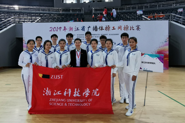 10月19日,2019年浙江省广播体操工间操比赛在浙江工业大学屏峰校区进行,bat36512名学生在教练员杨榕斌老师的带领下参加了第九套广播体操的单项比赛,并以90.5分的成绩,获省直组一等奖。