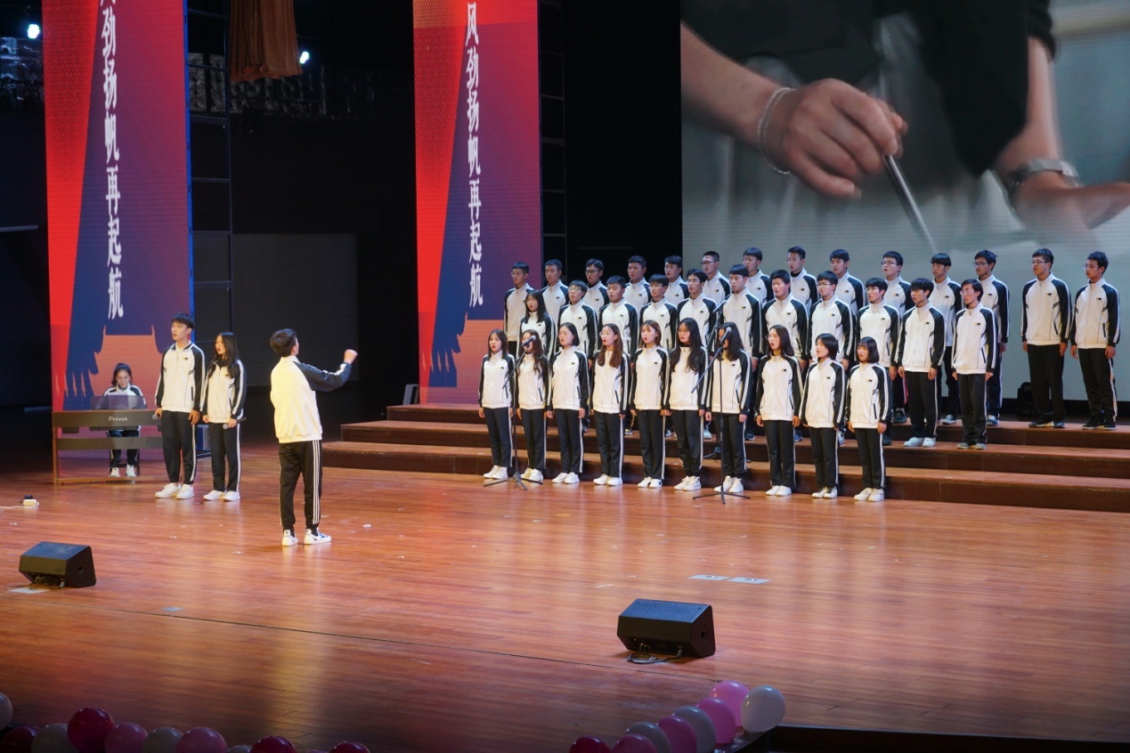本次晚会主题为“织梦七十年,星火筑华章”,共分为栉风沐雨秉初心、守正创新谱华章、风劲扬帆再启航等3个篇章。乐起舞动,舞蹈《芳华》一开场就吸引了全场的目光,娴熟的舞步、诗意的剧情、悠扬的旋律,无不感染着在场的每一位观众。学院辅导员合唱的《我们都是追梦人》,不仅展示了辅导员群体多才多艺的才华,拉近了与学生的距离,更彰显了青年教师的蓬勃朝气和追梦之心。由学院党政班子深情朗诵的《中国,我的新中国》,不仅让观众回想起百年前的风云激荡,更深切体会到幸福生活来之不易及七十年来发生的翻天覆地的变化。