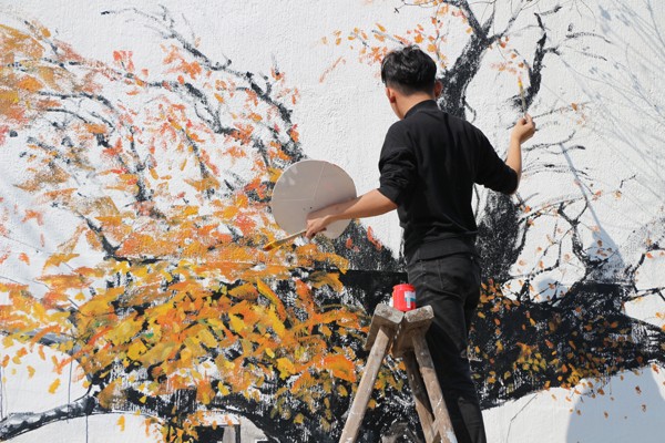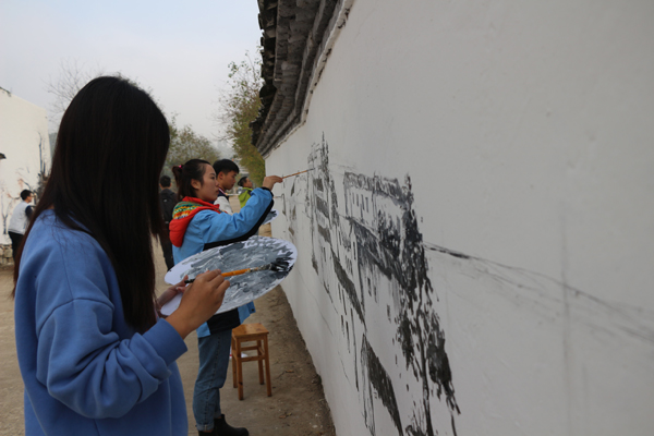 11月5日至6日,校团委组织艺术学院、生化轻工学院学生到bat365结点基地天台县南屏乡开展墙绘活动。同学们用手中的画笔描画当地美丽风貌和历史沧桑,见证了浙江科技学院与南屏乡8年多的结对情感。