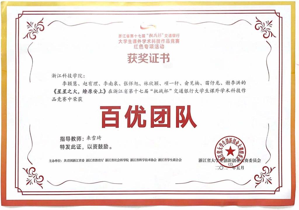近日,浙江省第十七届“挑战杯”大学生课外学术科技作品竞赛红色专项活动落下帷幕,经激烈角逐,bat365理学院“星星之火,燎原安上”团队获百优团队荣誉称号。