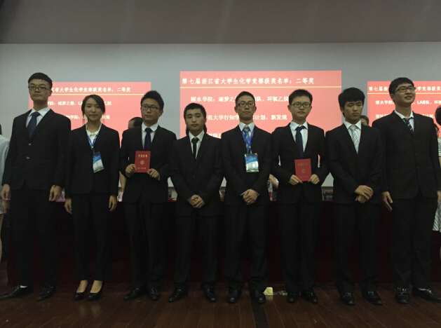 2015年9月9日至10日,第七届浙江省大学生化学竞赛暨第十二届浙江省高校化学化工实验教学中心主任联席会,在浙江工业大学举行,来自浙江省27所高校的49支师生代表队参加了此次竞赛。本次竞赛今年升级为A类竞赛,由浙江省教育厅指导,浙江省化学会、浙江省高等学校化学化工制药类教学指导委员会主办。