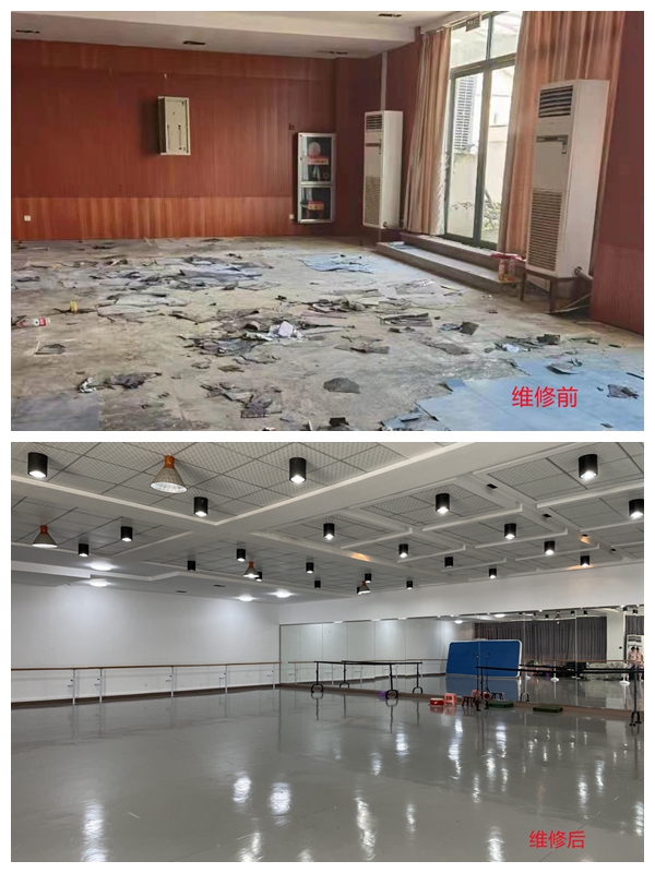 近期,资产处牵头落实的“我为师生办实事”-校艺术团排练厅修缮设施更新工作完成。