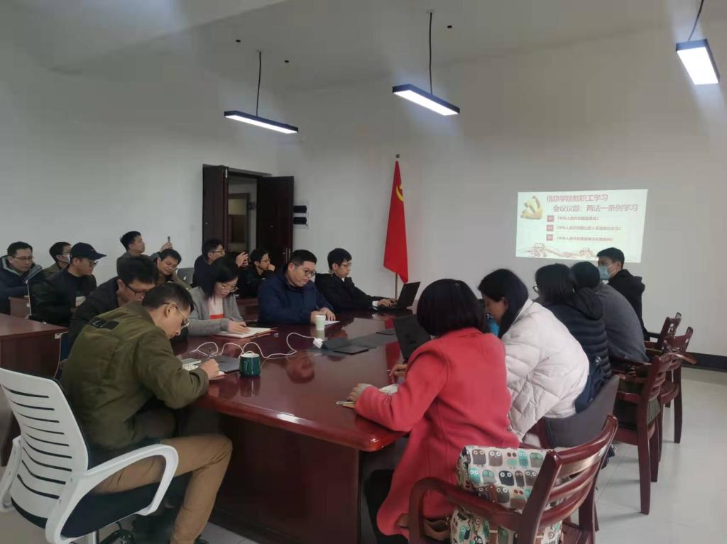 近日,信息学院纪委在校纪委的指导下,认真做好“两法一条例”普法宣传工作方案,以学院纪委班子成员带头学,督促学院党组织开展理论学习中心组专题学习,结合教职工政治理论学习及党支部主题党日活动契机,纪委全体成员进联系支部、系部进行专题普法宣讲,组织全体教职工重点学习了省纪委省监委“两法一条例”专题讲座视频。在学院形成学习“两法一条例”普法学习新热潮,努力实现“两法一条例”学习宣传“全覆盖”工作。