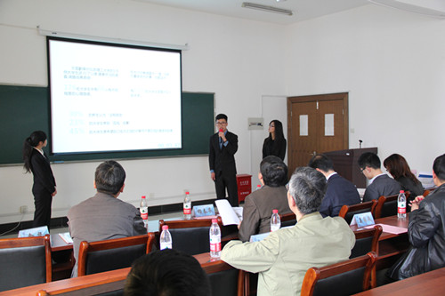 比赛在主持人介绍参赛流程后正式开始,各参赛团队按抽签顺序陆续上台对自己的作品进行展示和讲解,并接受评委老师向选手提出的关于技术、资金以及经营报告建立基础的提问与点评。入围决赛的十支队伍,既有雏形阶段的“呦猪帐号租赁网”项目、“心之旅”项目,也有已经投产使用的“基于二维码的奇妙儿童内衣”、“掌柜(校园版)”、“书桌上微信”项目;既有关注节能环保的“无纸化电子票不是梦”项目、“与会”APP,也有涉及国民心理问题的“由心”—基于移动端的新概念心理健康APP项目;既有关注高科技3D打印的“Maybe Zone科创三维创意有限公司”,也有将传统农业与互联网向连接的“森活”——基于手机的大棚农作物实时生长状况监测系统。