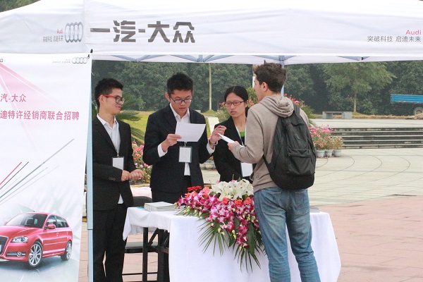 10月30日,一汽大众奥迪特许经销商在bat365和山广场进行了招聘路演。期间,工作人员耐心介绍宣讲会宣讲内容,讲解招聘所需材料,并派发精心准备的小礼物。