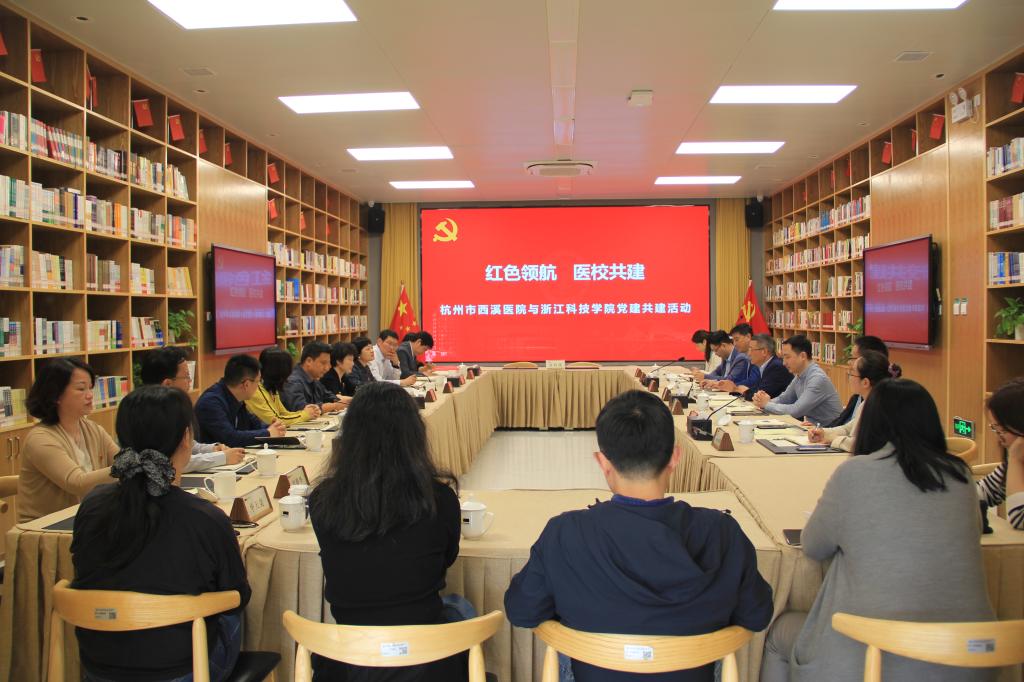 4月21日,bat365后勤服务中心综合党支部、外国语学院教工第四党支部与与杭州市西溪医院行政第一党支部签署了党建共建协议书。校党委委员、副校长陈平,杭州市西溪医院党委书记张祖勇,党委委员、纪委书记汪皓秋等出席,后勤服务中心、外国语学院党政负责人、支部教师代表等参加签约仪式 。