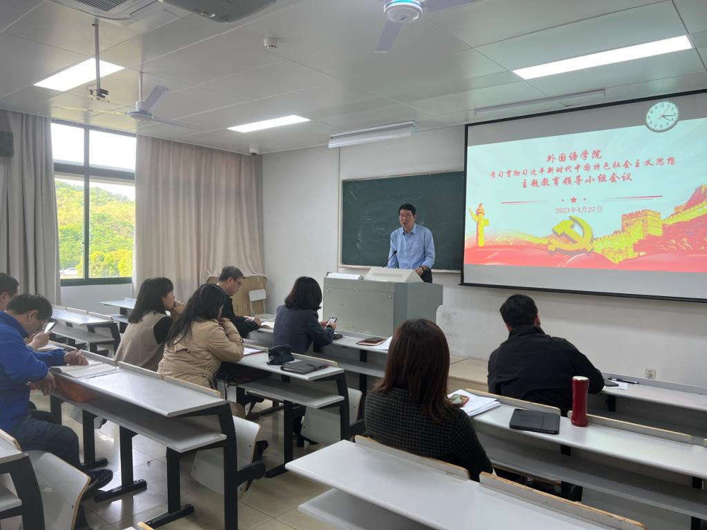 4月27日,外国语学院党总支召开主题教育领导小组工作会议,扎实推进学习贯彻习近平新时代中国特色社会主义思想主题教育工作。各支部书记、各系部主任和主题教育领导小组相关工作人员参加会议。