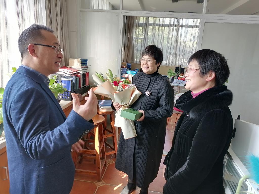 校党委副书记张日向代表学校党委行政走访看望女教授、女干部代表,并向全校广大妇女同胞致以节日祝福和诚挚敬意。各二级工会也纷纷把鲜花和祝福送到每位女教授们手中。一朵朵芬芳的鲜花、一句句暖心的话语,表达了对广大女教职工们的关爱和美好祝愿。