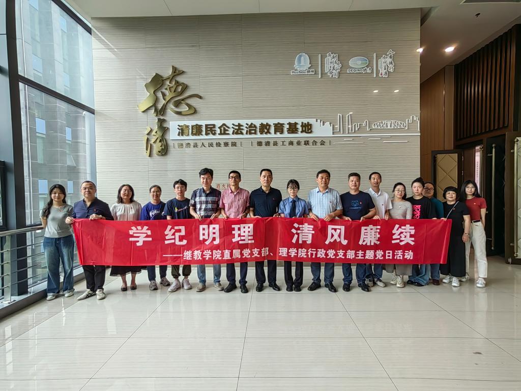 6月20日,继续教育学院直属党支部与理学院行政党支部共赴德清县清廉民企法制教育基地开展“学纪明理,清风廉续”主题党日活动,现场接受清廉文化洗礼和廉政警示教育。学院直属党支部支委班子成员、教工党员和理学院行政党支部党员参加。