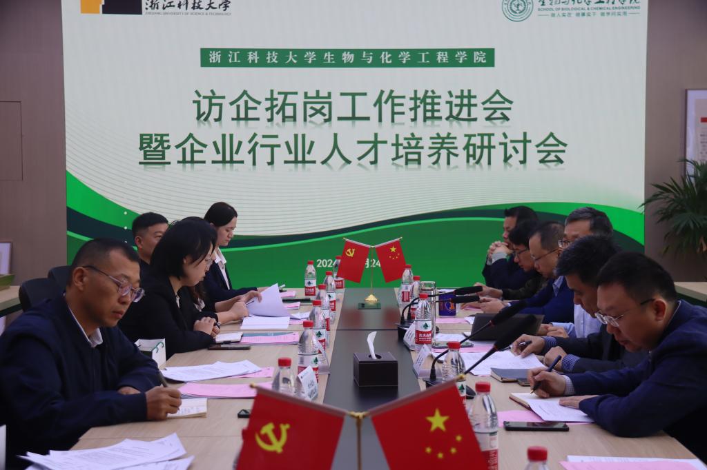 10月24日,生化学院召开访企拓岗工作推进会暨企业行业人才培养研讨会。校党委委员、宣传部长徐华军,学院负责人出席。来自杭州福斯特应用材料股份有限公司、杭州博之锐生物制药有限公司、杭州康恩贝制药有限公司、杭州新希望双峰乳业有限公司、杭州金善祥生物科技有限公司、杭州氟创科技有限公司相关代表参会。