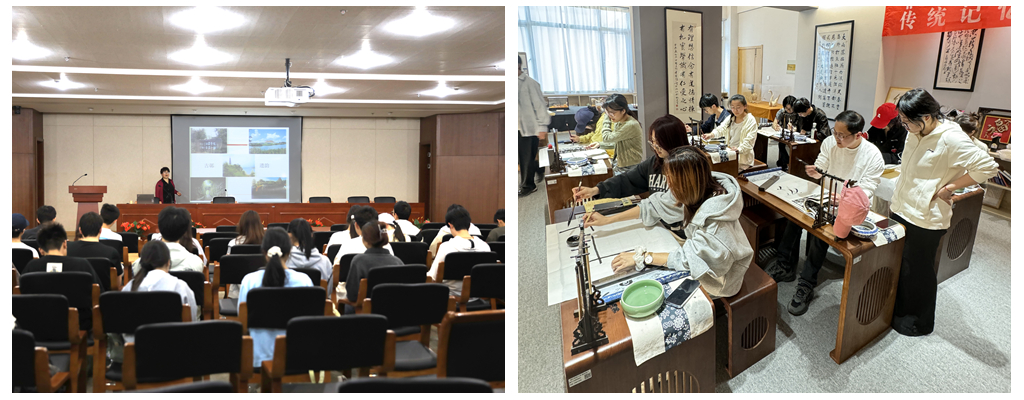 揭牌仪式后,吴昌硕纪念馆原副馆长范一安作昌硕文化讲座,她撷取了吴昌硕诗书画印中的咏乡作品,将其生平和艺游作串联,构建其独特的怀乡与归思情境,解读地域因素对大师艺术创作的影响,使同学们深刻了解昌硕文化的发展历程。吴昌硕纪念馆副馆长程卫忠在雅竹书院开设书法小课堂,向同学们讲解昌硕书法的特点,并亲自示范教授练习书法。