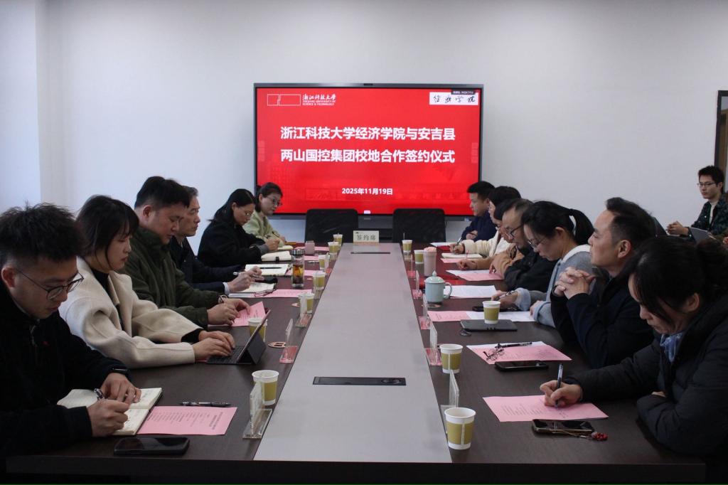 11月19日,经济学院与安吉县两山国控集团举行校企合作签约仪式,经济学院相关负责人、系主任、研究生代表,安吉县两山国控集团领导班子参加。