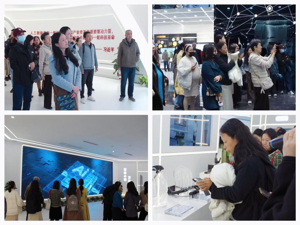 一踏入中国(杭州)人工智能小镇的展厅,充满现代感的蓝白配色空间与科技化的数字大屏便映入眼帘,令人仿佛置身于未来世界。在讲解员的介绍下,党员教师们深入了解了杭州市人工智能产业的发展概况,以及人工智能小镇的战略定位、建设规划和重要使命。展厅集中呈现了人工智能在快递物流、健康医疗、芯片科技、低空经济、环境生态等多个领域的实际应用成果,生动展现了AI技术赋能社会生活的广阔前景。在参观过程中,党员们深刻体会到推动人工智能国际合作的重要意义。人工智能不仅赋能高质量发展,改变生活、引领未来,其蓬勃发展更彰显出科技服务社会、造福世界人民的深远力量。