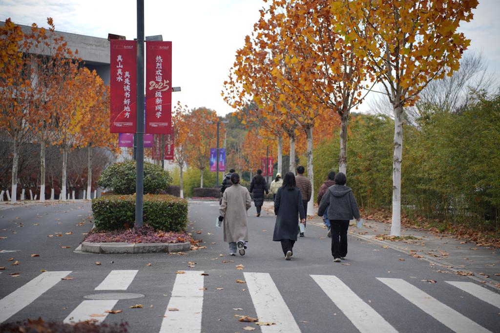12月4日,冬日暖阳照射下的校园色彩斑斓,千名教职工在两校区开展校园健步走活动。