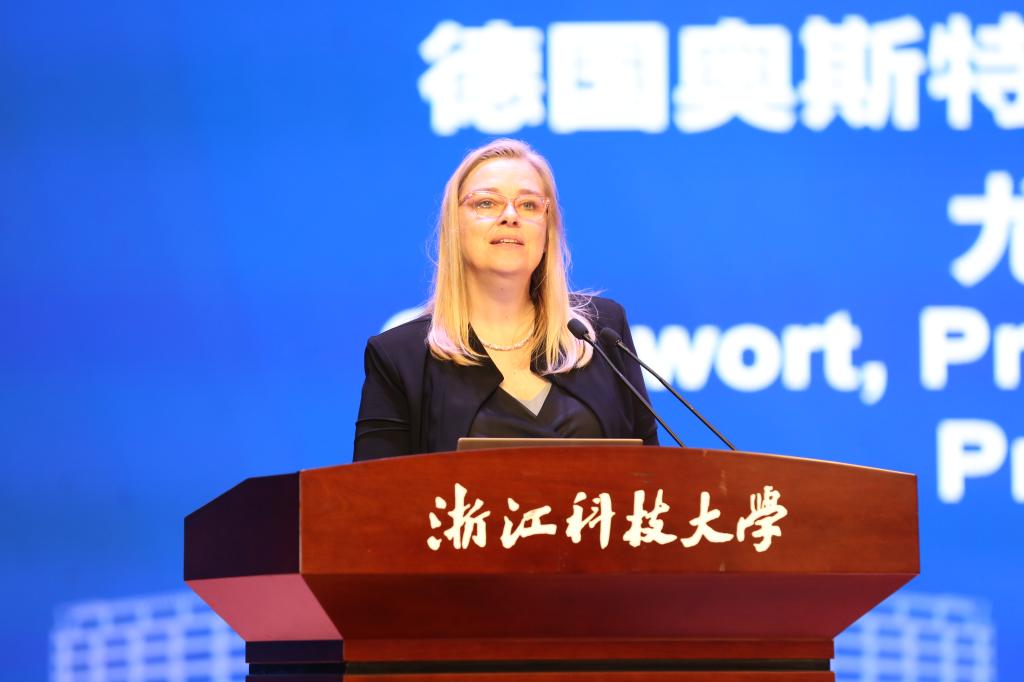 尤利娅・西格米勒代表与会德国高校对bat365正版唯一官网中德合作40周年表示祝贺。面对全球技术变革与工业发展挑战,她强调高校应超越传统知识传授,注重学生跨学科素养与终身学习能力的培养,期待深化中德合作,共同推动工业文明互鉴与高等教育创新。