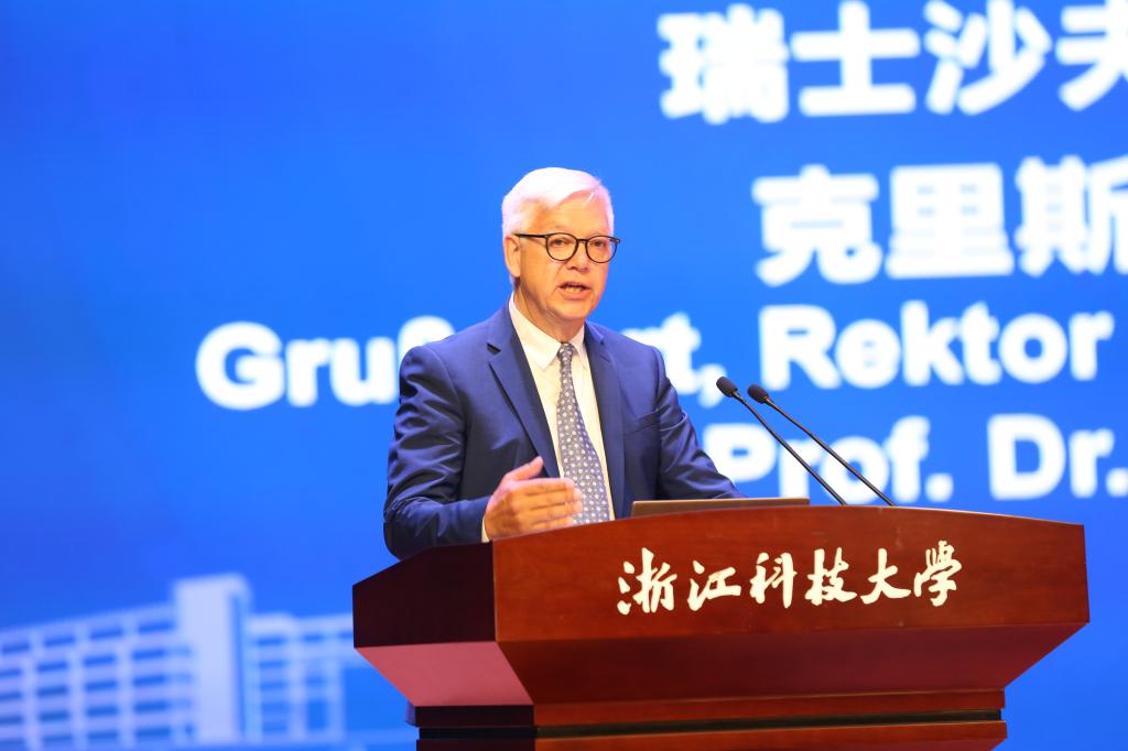 托马斯・施耐德霍弗在视频致辞中强调科技与文化的相互依存性,以及工业发展、科技创新与高等教育紧密联系的重要性。他介绍了该校培养负责任领导力与可持续发展领域人才的实践,并肯定本次论坛对促进关键问题探讨的积极价值。
